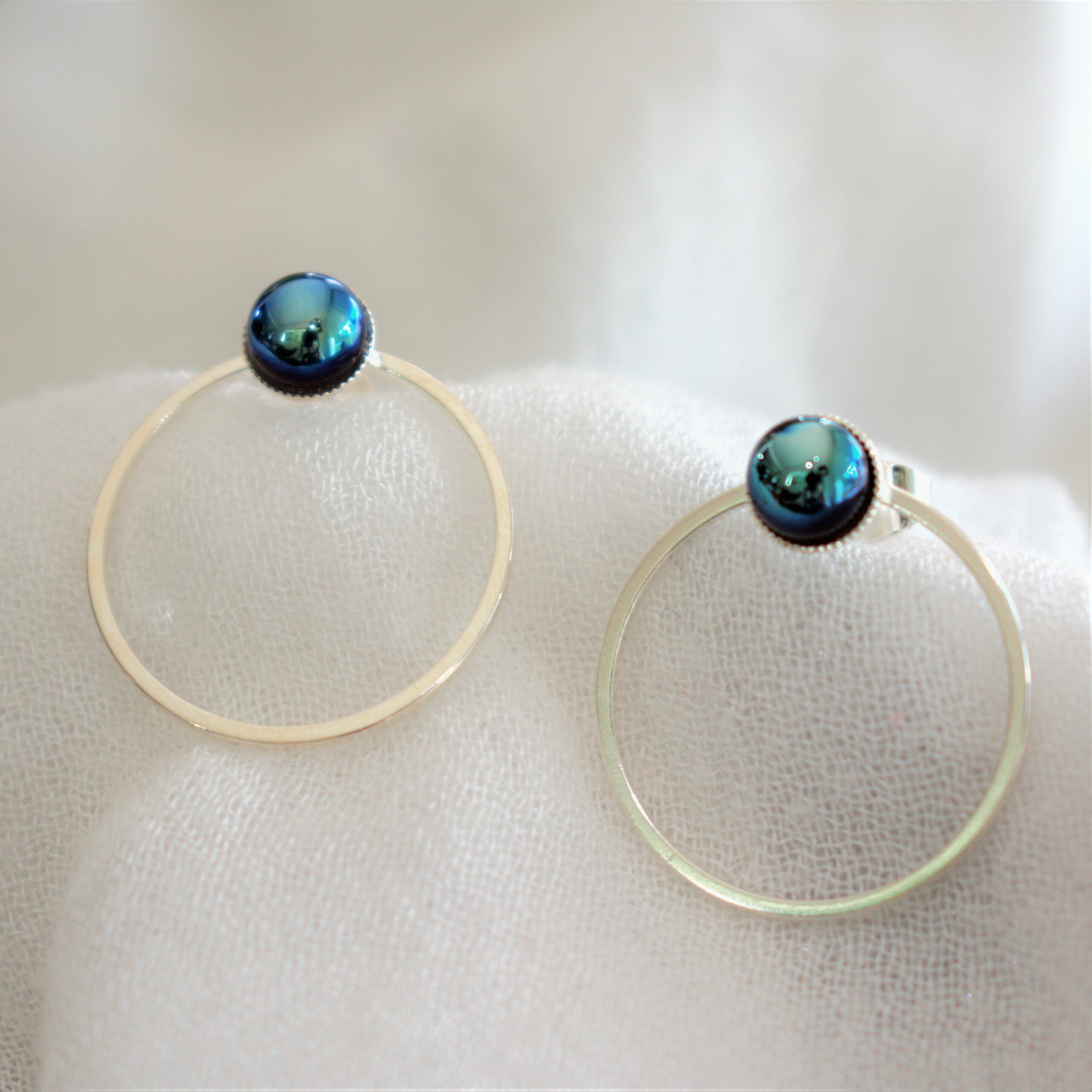 Magnifiques perles de verre façonnées à la main dans le feu au sein de mon atelier, montées sur des créoles argentées.